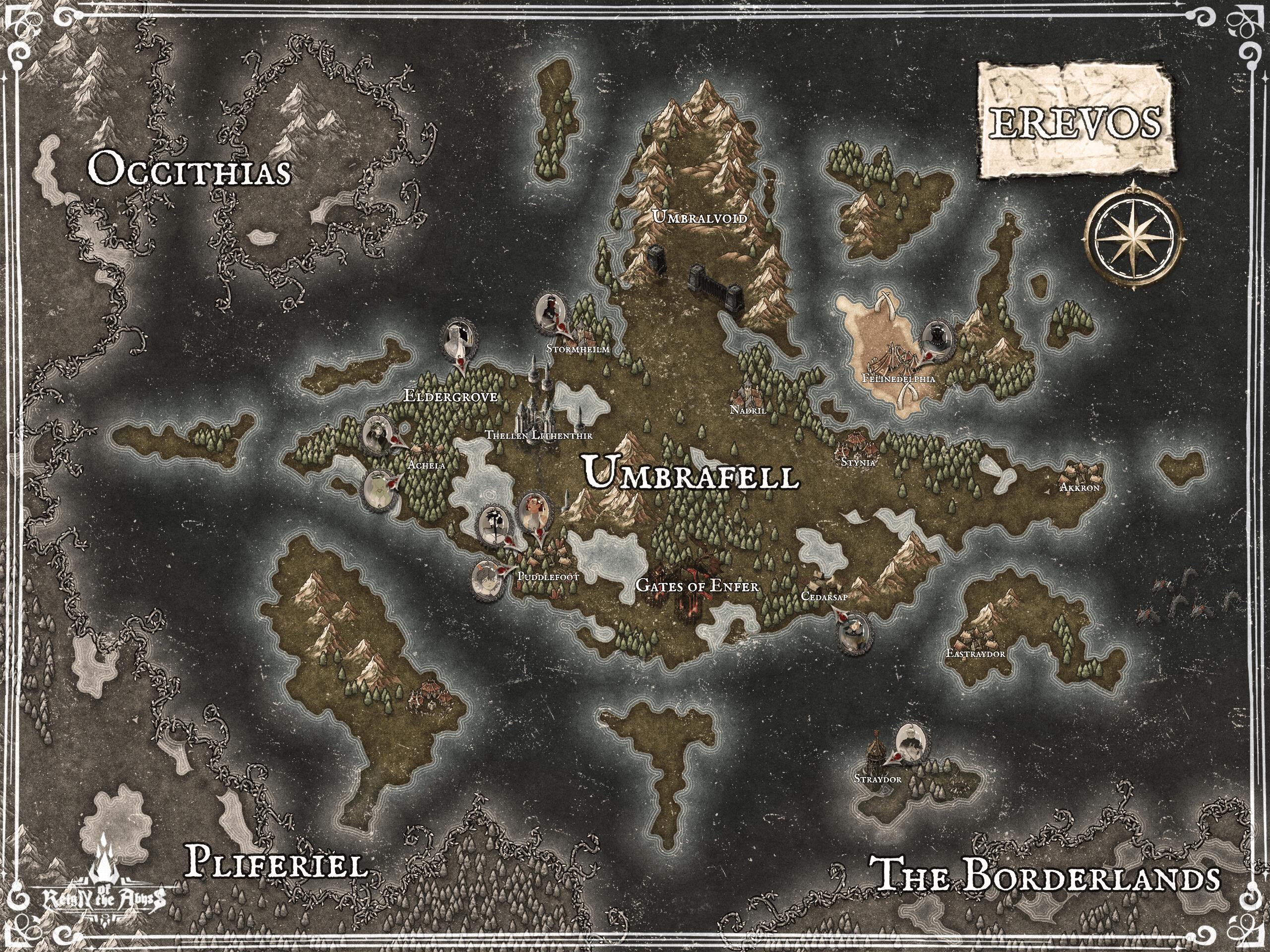Umbrafell Map created by Jessica Murphy using 'Inkarnate'