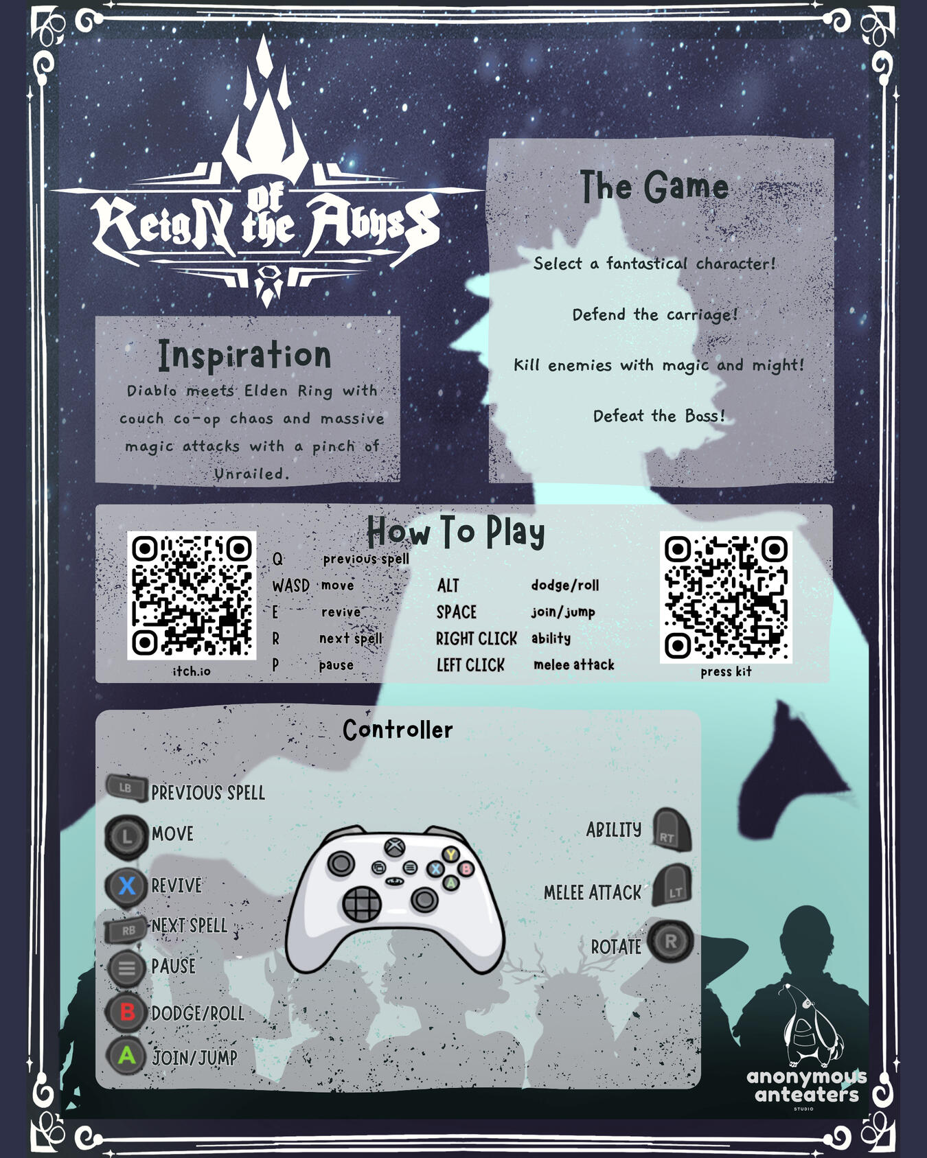 To go alongside the awesome mechanics & spells we created different characters for the game. Each character has different lore and such but all play a massive part in the game! Check out the individual press kits from above for more information on them individually!
